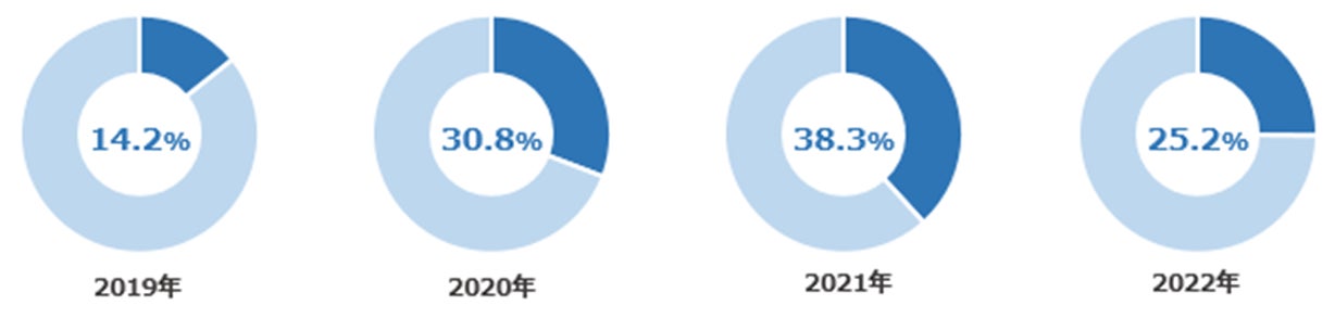 コロナ禍の2020年・2021年は、各国の出入国制限や査証取得、隔離の必要性などもあり、レジャー需要はほぼ消滅し、日本在住の外国籍の方の帰省需要や必要に応じた業務渡航の方が多く、旅先にもその傾向が見受けられます。今年は10月に世界的に人気のグループによるコンサートが釜山で開催されたことを受け、釜山への需要が例年より高くなりました。イベントによる人の国際的往来が再開したことは、海外旅行回復の大きな一歩と考えられます。引き続き、帰省需要や業務渡航の需要もございますが、下記購入商品の構成比で紹介するパッケージツアー利用の比率が伸びてきたことからも、
