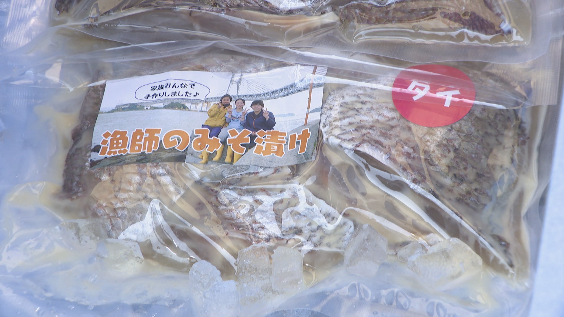 瀬戸中央自動車道の与島パーキングエリア(坂出市)では、グルメや物産を販売する「せとうちマルシェ」が開かれ、ワカメやタイのみそ漬けなど与島・櫃石島の海産物をはじめ、瀬戸内の特産品が並び、多くの人が買い求めていました。